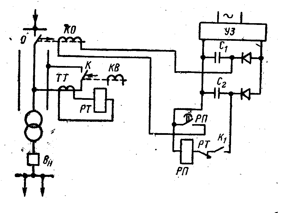 Рис. 2. Защита трансформатора от внешних к. з. и перегрузок.