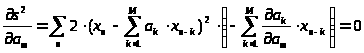 при нахождении коэффициентов предсказателя.