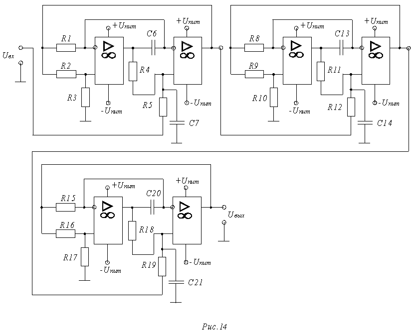 На этом расчет фильтра можно считать законченным на Рис.14 изображена схема рассчитанного фильтра.