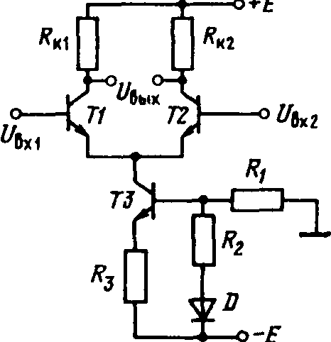 В многокаскадных УПТ R>Н> является входным сопротивлением последующего каскада, величина которого, как было показано выше, может быть очень большой. Таким образом, ДУ с отражателем тока является усилителем с большим К>и диф> и, естественно, обладает всеми преимуществами дифференциальных усилителей.