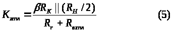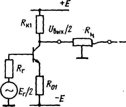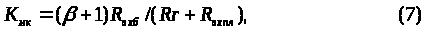 Учитывая изложенное выше, коэффициент усиления ДУ по току можно представить в виде (6), заменив R>Н> на R>Н> /2. Нетрудно показать, что выходное сопротивление ДУ для рассматриваемой схемы его включения равно удвоенной величине выходного сопротивления плеча R>вых пл> , которое для каскада ОЭ можно считать равным R>К>.