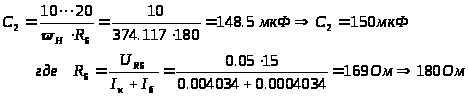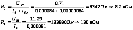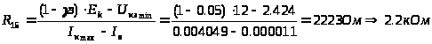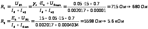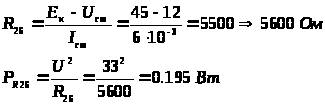 Приняв U>з >= 0,7В получили E>к >= 43,118В, округлим это значение до стандарта, т.е. примем E>к> = 45В