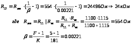 Входное сопротивление усилителя мощности R>вх>=0,2646 кОм=264,6 Ом;