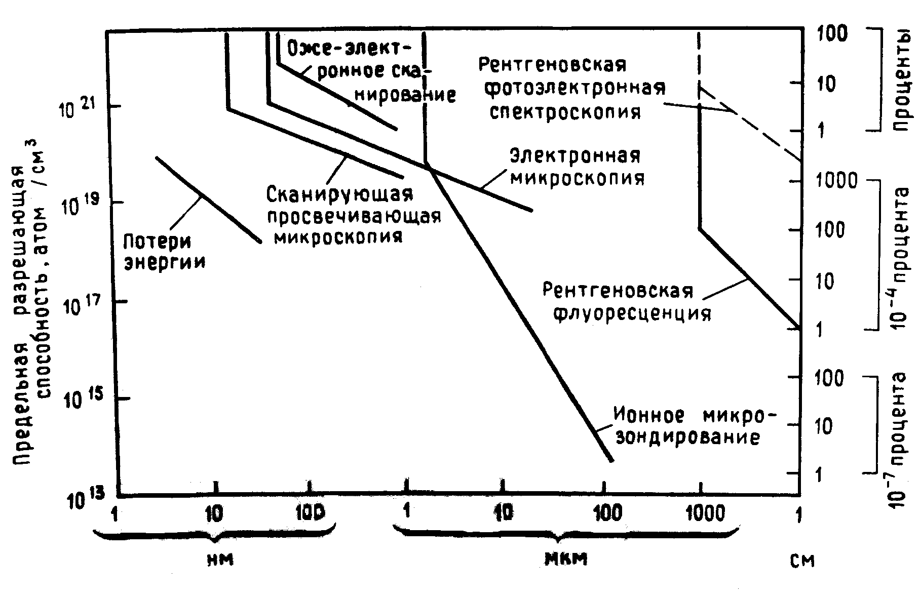 При анализе малых площадей сканирующий микрозонд дает еще два преимущества: меньше участок поверхности, испытывающий возмущение, а изображение, получаемое на экране ЭЛТ, сразу же пригодно для анализа.