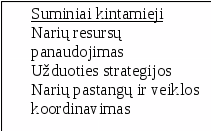 4) diskreti - grupė pati gali parinkti nario darbo įnašo svarbą vertinant jį nuo 0 iki 1.
