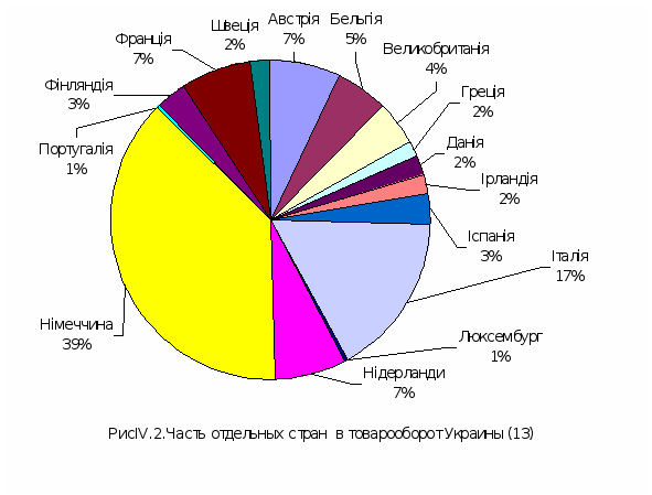 Западная Европа – одни из главных торговых партнёров Украины, Экспорт в ЕС составил в 1998 г. более $3,3 млрд., импорт - $2,1 млрд. Этот показатель сопоставим с показателями внешнеторговых операций Украины со странами СНГ. Но если негатив в обменах с СНГ обусловлен импортом энергоносителей, то европейский негатив – результат недостатков нашей внешнеторговой политики в целом, а конкретно - пассивностью экспортного сектора, его неготовностью работать в конкретных условиях, перегруженностью экспорта бартерными операциями, неадекватным менеджментом.