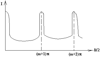 Рис. 3. Зависимость интенсивности в интерференц.. картине интерферометра Фабри - Перо от разности хода