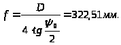 Используя соотношение, связывающее диаметр раскрыва большого зеркала D, угол раскрыва большого зеркала >0> и фокусное расстояние большого зеркала f , описанное в [1] на с. 23, найдём фокусное расстояние большого зеркала по формуле: