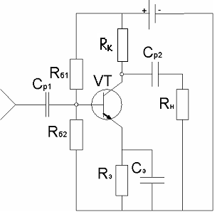 Чтобы обеспечить амплитуду выходного сигнала, заданную в техническом задании, нужно выбрать многокаскадный усилитель, так как одного усилительного элемента недостаточно. Поэтому определим число каскадов для обеспечения выходного сигнала.