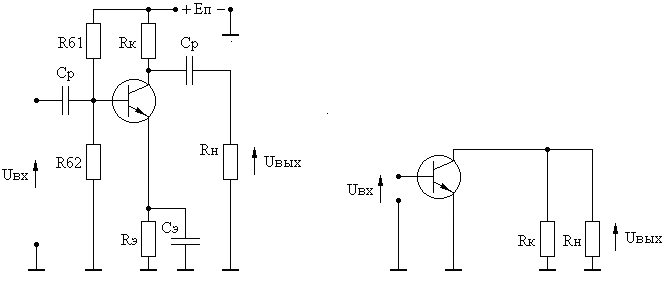Рисунок 3.1 – Принципиальная и эквивалентная схемы резистивного каскада