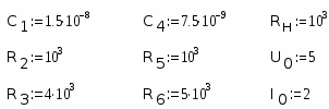 Для нахождения постоянных интегрирования A>1>, A>2>, A>3>, A>4> требуется 4 уравнения. Первые два уравнения получим из выражений точного решения уравнений состояния, учитывая законы коммутаций: переменные состояния не меняют своего значения в момент коммутации.