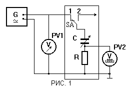 Собираем схему, изображенную на РИС. 1. Ставим переключатель SA в положение 1. Подготавливаем к работе и включаем приборы. Подаем с генератора сигнал частоты f=60 кГц и напряжением U=5 В, затем по вольтметру PV1 установить напряжение U1=5 В. Далее, вращая подвижную пластину, измеряем напряжение U2 для конденсатора без диэлектрика и 4-x конденсаторов с диэлектриками одинаковой толщины. При этом напряжение U1 поддерживаем постоянным.
