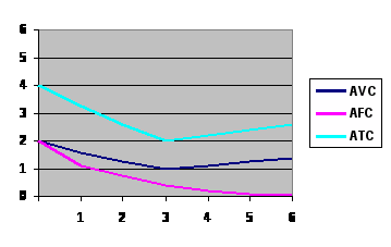 График динамики изменения средних издержек производства по мере увеличения объема производства.