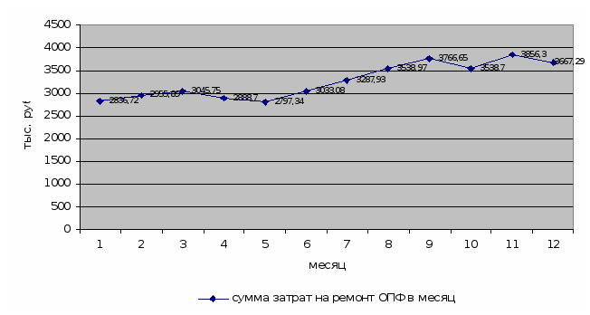 Таблица 2.2. Динамика затрат на ремонт основных производственных фондов ОАО «Черногорнефть» (по месяцам) за 1999 год.