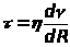 где - напряжение внутреннего трения; dv/dR - градиент скорости по радиусу трубы или относительное изменение скорости по направлению, перпендикулярному к направлению течения, т.е. приращением скорости на единицу длины нормали; — коэффициент (касательное усилие на единицу площади, приложенное к слоям жидкости, отстоящим друг от друга на расстоянии, равном единице длины, при единичной разности скоростей между ними).