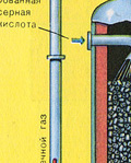 Из печи выходит печной газ, состав которого: SO>2>, O>2>, пары воды (пирит был влажный!) и мельчайшие частицы огарка (оксида железа). Такой печной газ необходимо очистить от примесей твёрдых частиц огарка и паров воды.