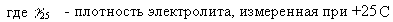 Плотность электролита, приведенная к +15С (288К), и температура его замерзания |