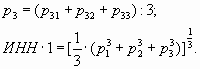 Агрегатный показатель Р>3> рассчитывается как среднее арифметическое трех его составляющих. Формула ИНН-1 имеет вид: