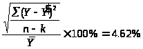 Полученный тренд изображен на графике (1) .Однако видно,что отклонение фактических уровней от расчетных довольно велико.Об этом же говорит довольно большое ср.квадратическое отклонение (6.1) .Рассчитаем ошибку тренда в процентах по формуле :