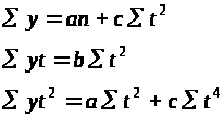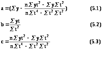 По итоговым данным таблицы определяем по формуле (5.1) - а ,по формуле (5.2) - b ,по формуле (5.3) - с .