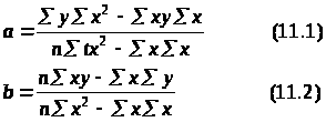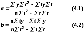 Параметр b является коэффициентом регрессии, определяющим направление развития. По методу наименьших квадратов находим a и b