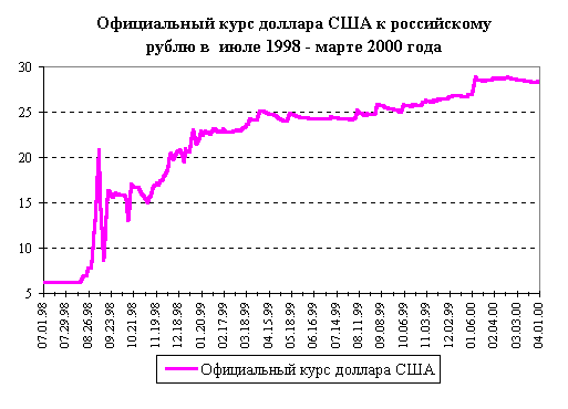 Во время разразившегося в 1998 году финансового кризиса, пытаясь противодействовать быстрому падению обменного курса рубля, Банк России потратил значительные объемы валютных резервов — почти 10 млрд. долларов. Однако избежать значительной девальвации национальной валюты не удалось.