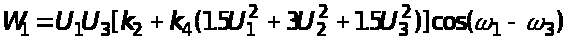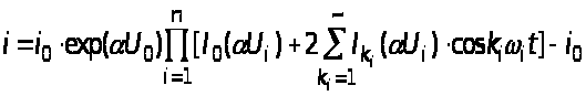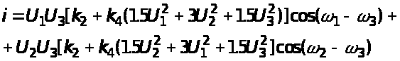 После перемножения из формулы (2.1.5) можно извлечь выражения всех спектральных составляющих тока на выходе полупроводникового преобразователя частоты. Комбинационные составляющие, образующиеся в результате взаимодействия всех компонент спектра входного сигнала, имеют амплитуды: