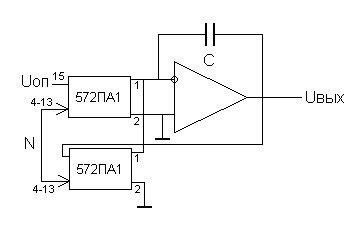 Но нам нужен перестраиваемый фильтр следовательно вместо резисторов будем использовать токовый ЦАП 572ПА1.
