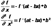 Здесь штрих означает дифференцирование по аргументу at—bx. Продифференцируем теперь нашу функцию дважды по х:
