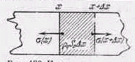 так как здесь поперечный размер (в отличие от твердого стержня) остается, постоянным, а длина превращается в . Но произведение плотности на объем, равное массе рассматриваемой порции вещества, не меняется: