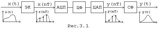 Дискретизация осуществляется электронным ключом (ЭК) через равные интервалы времени T (Рис. 1.1).