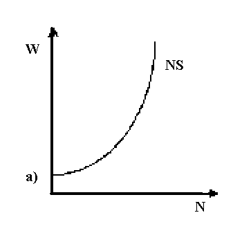 Соответственно, графически функция предложения труда может быть представлена в виде кривой с положительным наклоном, в системе координат (w, N). Этот достаточно очевидный вывод нуждается в некотором комментарии.