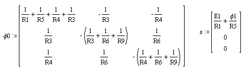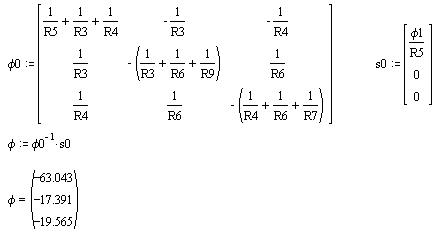 Для данной расчётной схемы составим матрицу, использовав метод узловых потенциалов :