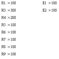 I1, I2, I3, I4, I5, I6, I7, I8, I9 – токи в соответствующих участках цепи.