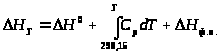 или d(ΔН)=C>p>dТ, где С>р>—теплоемкость при постоянном давлении. При расчете ΔН следует учитывать не только изменение энергосодержания системы в зависимости от температуры, но и изменение агрегатных и полиморфных состояний, при котором происходит поглощение энергии при постоянной температуре: