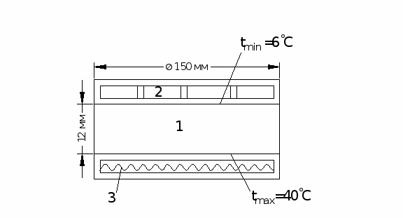 Для определения коэффициента теплопроводности сыра методом пластины (см. рис.1.) через слой продукта, имеющего форму диска диаметром 150 мм, толщиной 12 мм, направляют тепловой поток Q=14.8 ккал/час.