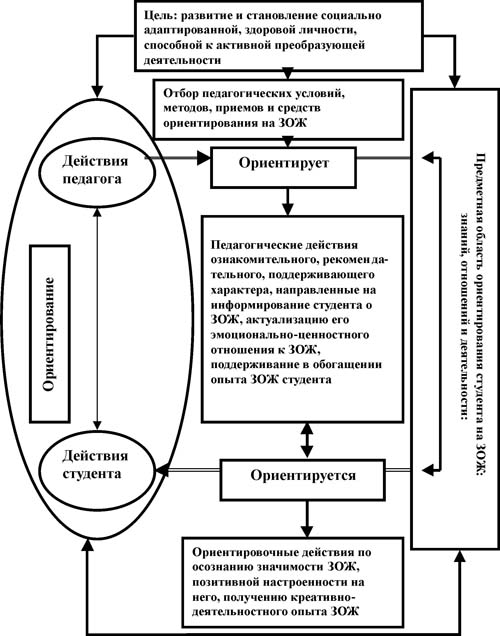 Таким образом, ориентирование студента на ЗОЖ через реализацию совокупности педагогических условий, методов, приемов и средств информационно -познавательного, эмоционально-ценностного и креативно -деятельностного характера может осуществляться в образовательном процессе вуза и способствовать решению проблемы формирования ЗОЖ студента.