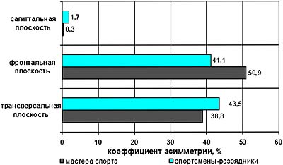 Рис. 2. Асимметрия физического развития спортсменов относительно различных плоскостей