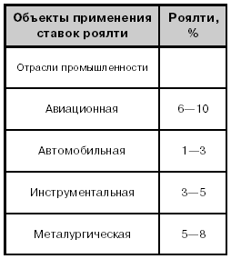 Значение ставки роялти определяется экспертным путем посредством выбора наиболее вероятной ставки в случае продажи лицензии на использование бренда среди соответствующих отраслевых показателей, ставок для похожих компаний, брендов, условий сделок и т. п. Чаще всего статистика располагает ставками роялти, рассчитываемыми от операционной прибыли до налогообложения; также бывают ставки по денежному и натуральному объему проданной продукции. В таблице (ТАБЛИЦА 4) приведены примеры ставок роялти для различных отраслей.