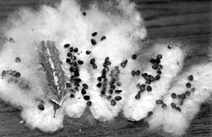 Плоды бомбакса – многочисленные продолговатые твердые коробочки длиной до 15 см. Коричневые семена длиной 4–5 мм окружены капоком – пухом из тонких шелковистых волосков, отходящих, однако, не от семян, как у хлопчатника, а от стенок околоплодника. Ко времени раскрытия коробочки волоски отрываются от ее стенки и с помощью выделяемой слизи приклеиваются к семенам, увеличивая их летательную способность. Семена распространяются ветром.