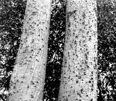 Ствол дерева покрыт бородавчатыми шипами