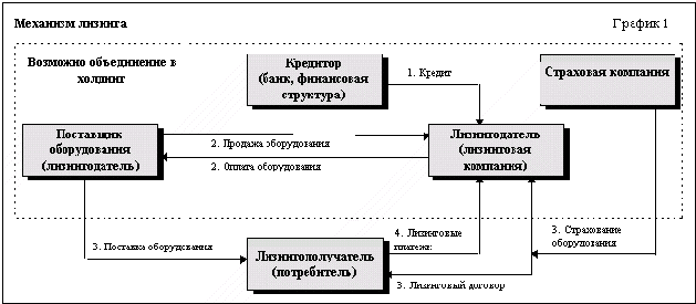 В классической лизинговой сделке взаимоотношения между субъектами строятся по следующей схеме: будущий лизингополучатель, нуждающийся в определенных видах имущества, самостоятельно подбирает располагающего этим имуществом поставщика. В силу отсутствия собственных средств и доступа к заемным средствам для приобретения имущества в собственность он обращается к будущему лизингодателю, имеющему необходимые средства, с просьбой о его участии в сделке. Это участие лизингодателя выражается в покупке им имущества у поставщика в собственность и последующей его передаче лизингополучателю во временное пользование на оговоренных в лизинговом соглашении условиях.