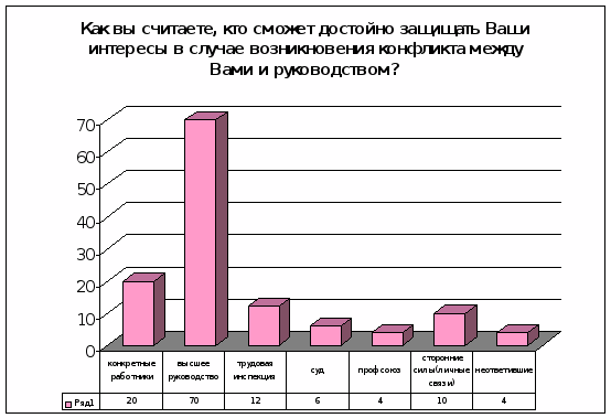 11. Как вы считаете, кто сможет достойно защищать Ваши интересы в случае возникновения конфликта между Вами и руководством? (можно указать 3 варианта)