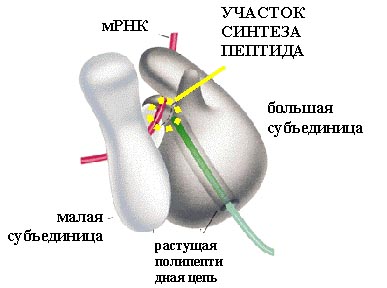 Перейдем к трансляции – синтезу белков. Она проводится рибосомами. Рибосома состоит из двух субчастиц: большой и малой.