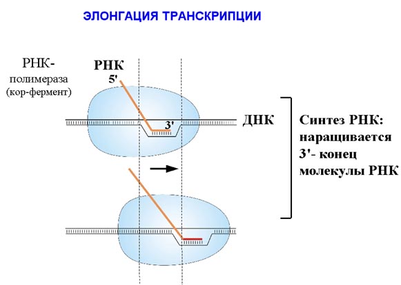 Как происходит элонгация транскрипции?
