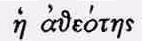 В сочинениях Климента Александрийского атеизм выступает как достаточно широкое понятие, заключающее в себе и многобожие, и материализм, и незнание "истинно сущего Бога". Может быть, упоминание о материализме покажется читателю натяжкой, но Климент прямо связывает атеизм философов с их учением о стихиях как началах Вселенной. Фалес (ок. 625 — ок. 545 до н.э.), Анаксимен (585—525 до н.э.), Гераклит (ок. 544—483 до н.э.), Эм-педокл (487/482—424/423 до н.э.), Левкипп (V в. до н.э.), Демокрит (ок. 460 — ок. 371 до н.э.) — это "философы-атеисты, потому что они с некоторой нерассудительной мудростью материю обожают" (Климент Александрийский. Кто из богатых спасется. Увещание к эллинам. С.125). Любопытно, что Климент снисходительно отнесся к тем, кого в древности считали самыми ярыми атеистами, в частности к Диагору и Феодору, "в эти религиозные обманы проникавшим"; он удивлялся, "за что это их называли "атеистами", их, кои истины сами не знали, зато, по крайней мере, в обман проникали, что дело вовсе неплохое, потому что это было семенем, из коего могло возникнуть познание истины?" (Там же. С. 84—85). В отличие от многих других христианских писателей, Климент считал, что Бог даровал эллинам философию "в качестве подготовительного фундамента (скалы, горного плато), на котором должно строиться и возвышаться здание христианской философии". Однако, и в эллинской философии диа-вол посеял плевелы: "отсюда-то произошло нечестивое учение Эпикура". И далее Климент пишет: "Это-то и унижает эллинскую мудрость, делая из нее науку партийную и далекую от знания совершенного" (Климент Александрийский, Строматы. Ярославль, 1892. С. 690, 691).