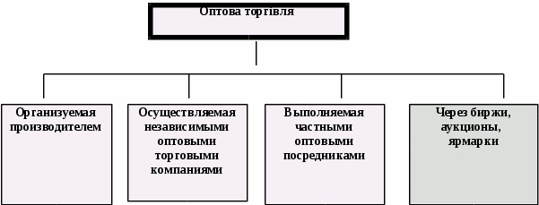 Кожному виду продукції, що реалізовується, відповідає свій канал збуту і організаційна форма оптової торгівлі. Найбільш поширеними можна рахувати наступні форми оптової торгівлі (схема 2).