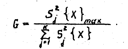G -критерий Kохрэна применяется для оценки однородности несмещенных оценок дисперсий, вычисленных по одинаковому числу N наблюдений. При этом генеральные совокупности должны быть распределены нормально. Критерий формируется как отношение максимальной из сравниваемых оценок дисперсий к сумме всех K дисперсий;
