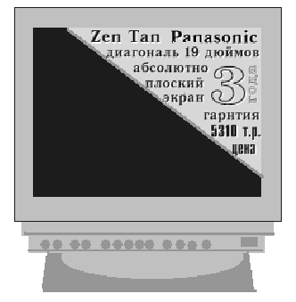 Так что самый лучший способ рекламы - это присутствие её почти во всех журналах, связанных с компьютерами ( благо у нас таких можно по пальцам пересчитать) и изредка - не чаще раза в неделю - по воскресеньям вечером по телевидению. А в самом начале - это в период внедрения товара на рынок хорошо бы поместить где-нибудь обзорную статью о новинке, т.е. нашем мониторе. Это здорово бы помогло.
