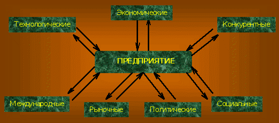 Анализ внешней среды представляет собой процесс, посредством которого разработчики плана контролируют внешние по отношению к предприятию факторы, чтобы определить возможности и угрозы для фирмы. Анализ внешней среды помогает получить важные результаты. Он дает организации время для прогнозирования возможностей, время для составления плана на случай возможных угроз и время на разработку стратегий, которые могут превратить прежние угрозы в любые выгодные возможности.